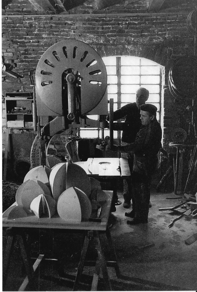 Bottega Meluzzi: da sinistra Carlo Meluzzi, Giorgio Meluzzi, Adamo Meluzzi, Bruno Marabin