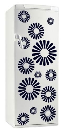 Un altro metodo piuttosto semplice per abbellire il frigo può essere quello di utilizzare degli adesivi: nastri adesivi, strisce adesive, ecc.. abbiamo solo l’imbarazzo della scelta e come limite la fantasia.. e un pochino di precisione. L’effetto potrebbe essere quello di avere un frigo a righe.