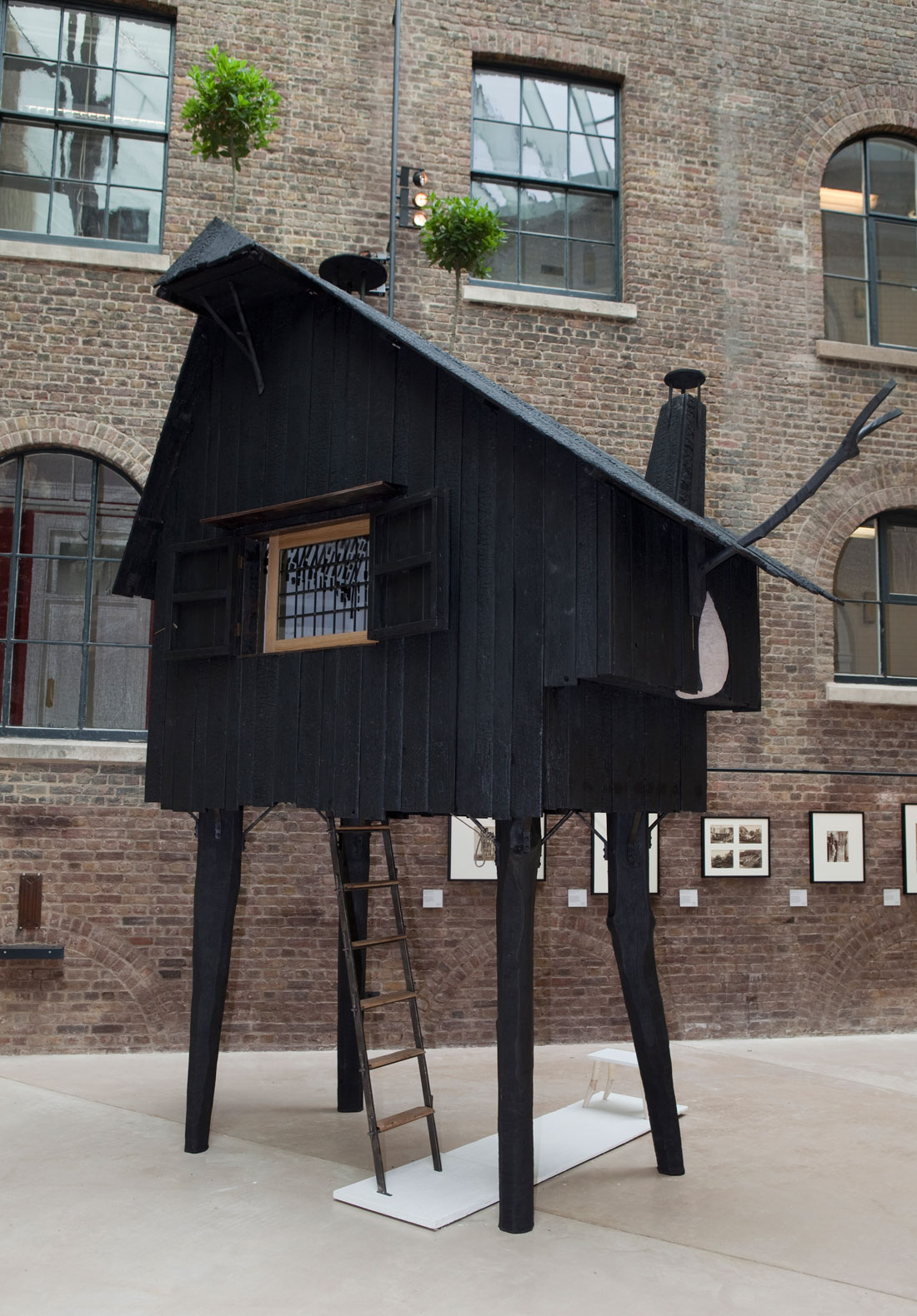 Particolarmente curiosa, la “casa volante di fango” una grande ghianda sospesa su cavi di tensione alla quale si può accedere solamente da una scaletta. Il progetto si basa sul concetto di dinamicità. A sostenere la struttura nel vuoto vi sono quattro pali di legno naturali (due da un lato, due da un altro) ben poggiati sulla terra. All’interno vi si trova una piccola stufa per riscaldare l’acqua nella teiera. Il pavimento è di gesso.