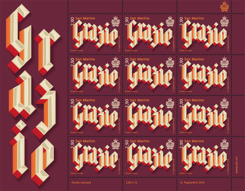 SAN MARINO. “Scusa“, “Per favore“, “Permesso” e “Grazie“: la nuova emissione dell’Ufn vuole trasmettere il valore autentico di semplici parole per incoraggiare comportamenti improntati alla gratitudine e alla riconoscenza da tenere nel rispetto di tutti e favorire la convivenza pacifica e l’armonia tra i popoli. La serie esplora stili differenti alternando forme di lettere diverse, che sono il punto d’arrivo di una ricerca stilistica che attinge da diversi ambiti/mondi di appartenenza e da differenti periodi storici. Il risultato è una rielaborazione in chiave moderna, con un look accattivante, volta a dar rilievo al valore ed al significato delle parole stesse. I francobolli, firmati dal visual designer sammarinese Davide Pagliardini, avranno una tiratura di 36.000 copie.